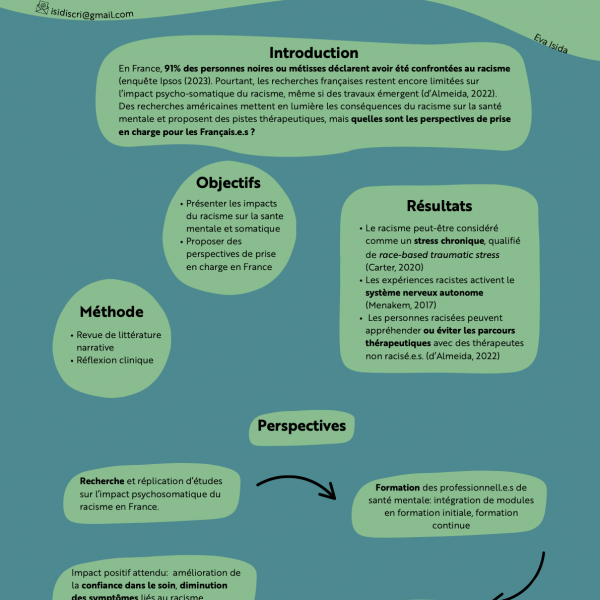 Je suis Eva Isida, psychologue sociale, j’ai à cœur de défaire les tabous autour de ces sujets, car je suis persuadée que la santé mentale est politique. Isidiscri, c’est “Isi”, de mon nom, et “Easy” de l’anglais simple; “discri” pour discriminations.